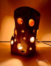 Lampada realizzata dal tronco di ulivo, trattata e decorata artigianalmente per creare un ambiente rilassante con la sua luce calda.