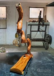 lampada fata a mano pezzo unico, la base e realizzata con legno di pino la parte superiore e realizzata con un tronco di edera, trattato con trasparente all acqua. la lampadina e a led alimentata 220V tramite filo con interruttore . dimensioni altezza 81 centimetri - lunghezza - 55 centimetri - larghezza 17 centimetri