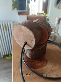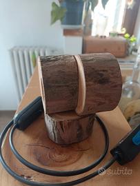 lampada in legno di cedro per scrivania. interamente fatta a mano, unico trattamento utilizzato è un impregnante color noce a base di acqua.