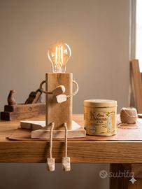 Questa lampada ha una storia speciale: è nata recuperando un travetto di legno del mio tetto, sostituito durante dei lavori di rifacimento. L'ho lavorata a mano nel mio laboratorio per darle questa forma e ho finito il legno in modo naturale, nutrendolo solo con cera d'api. Ogni pezzo è unico, ogni difetto è la caratteristica che arricchisce la lampada. 🪚 Com’è fatta Snodabile Le braccia e le gambe sono in fil di ferro avvolto da corda naturale, posizionabili a piacere Versatile Il legno naturale diventa un complemento d’arredo che si sposa con tutti gli stili in casa. Materiali Il corpo è in legno di castagno con le sue venature e imperfezioni naturali, protetto con cera d'api. Le mani ed i piedi sono legno di abete. Luce calda È una lampada pensata per creare atmosfera, perfetta su una scrivania o sul comodino. La lampadina LED a filamento (come in foto) è inclusa. ❤️ Il lato solidale Mi fa piacere che questo piccolo "Woody", nato da un pezzo della mia casa, possa servire a qualcosa di più grande: per ogni lampada venduta, donerò 5€ all'UGI di Torino (Unione Genitori Italiani), per sostenere i bambini e le famiglie che affrontano la malattia. Ti invierò la ricevuta della donazione a vendita avvenuta. 📍 Consegna Se possibile, preferirei il ritiro a mano in zona Vinovo, così puoi vedere la lampada dal vivo e sentire il profumo del legno cerato, ma possiamo anche accordarci per la spedizione. Regalo originale e con una storia da raccontare. Lampada legno fatto a mano recupero legno di recupero solidarietà UGI artigianato idea regalo