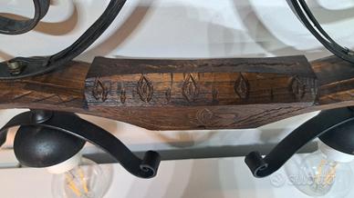 Lampada multiuso ricavata da un giogo per buoi, inciso a mano. Prodotto artigianale, pezzo unico. Dotato di 2 lampadine led.
