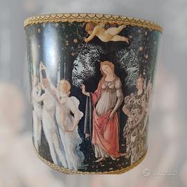 Paralume rigido decorato con una riproduzione rinascimentale (richiama chiaramente La Primavera di Botticelli, quindi non è un dipinto originale, ma una stampa applicata)