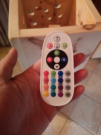 La lampada è fornita di un tubo centrale rettangolare provvisto di luci a led (Bianco, Verde Rosso, Blu). Attraverso il suo telecomando è possibile scegliere la tipologia di luce, le varie sfumature e l’intensità. È provvisto anche di 4 modalità di cambio cole automatico ( Flash, Strobe, Fade, Smooth).