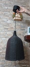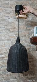 Bellissima lampada a sospensione in rattan nero, moderna, rustica, naturale, tradizionale, a cupola, in rattan, con cavo lungo, design boho, lampada a sospensione in rattan intrecciato naturale, lampada a sospensione per camera da letto, cucina, isola, vimini e bambù.