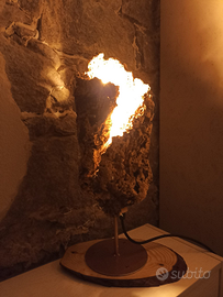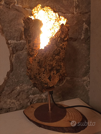 Lampada artigianale in sughero grezzo compreso di lampadina led vintage a filamenti,interno e dettagli colore rame... pezzo unico e originale!