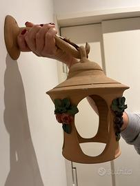 Vendo bellissima lampada artigianale in terracotta naturale, realizzata e decorata a mano.