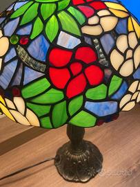 Come nuova - lampada con base in bronzo e paralume in vetro colorato. Preferibile consegna a mano in zona Bergamo.