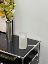 Lampada da tavolo o comodino (abat-jour) in vetro satinato cilindrico dal design vintage