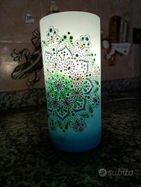 simpatica lampada color celeste ,di forma cilindrica con disegno in rilievo