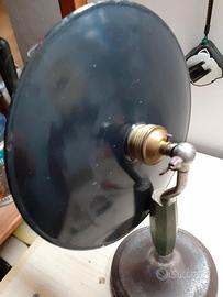 Salvato il portalampada originale in rame, è stato fatto un nuovo cablaggio per farla funzionare con la nostra tensione a 230 volt (la lampada, essendo americana, nasce a 120 volt, 600 watt, come da indicazioni della placchetta applicata).