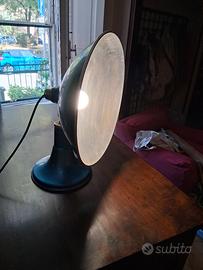 Lampada industriale per architetto, da tavolo, orientabile. In alluminio e ottone. misure diametro proiettore cm 40, altezza cm 50, base diametro cm 25. Epoca anni '50/'60.