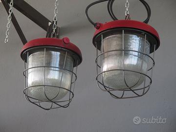 Vecchia lampada industriale completa di protezione in metallo H26/30 cm, diametro 26 cm. Disponibili 3 lampade. Già restaurate funzionati. Costo 1 lampada 70€