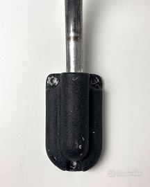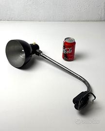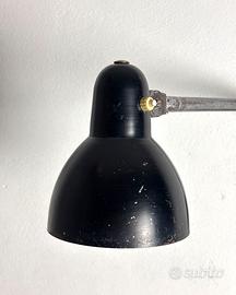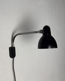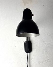 Lampada da parete lampioncino industriale vintage in perfetto stile Bauhaus prodotto in Germania negli anni '30. Il paralume in metallo smaltato nero porta l'interruttore, lo stelo a "L" è in ferro grezzo si innesta nella base nera con effetto bucciato in alluminio pressofuso. Oltre al paralume inclinabile, la lampada può ruotare di 180° La lampada è perfettamente funzionante in perfette condizioni con piccoli segni del tempo compatibili con l'età, il cablaggio è stato ricondizionato rispettando le specifiche dell'epoca, monta una lampadina (non compresa) con attacco E27.