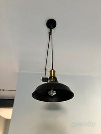Lampada a sospensione retrò, design classico con paralume in metallo nero.