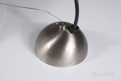Il cuore della lampada è il suo diffusore in vetro di cristallo rigato, che garantisce una diffusione della luce calda e avvolgente, perfetta per illuminare un tavolo o un angolo living con grande personalità. Il design è riconducibile allo stile delle officine e dei loft industriali di inizio Novecento, riproposto con un'eleganza contemporanea.