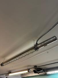 Lampada stile industriale in metallo con griglia metallica e illuminazione a neon. Ideale in casa con stile industriale o per ufficio.