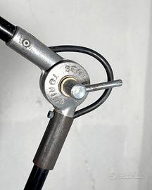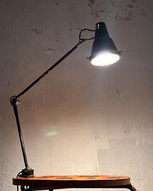 Lampada industriale vintage da tavolo anni '60, prodotta dalla casa torinese Seminara, azienda attiva dagli anni '30, specializzata nella produzione di lampade da bordo macchina per il settore metalmeccanico. Le particolarità che rendono questa lampada così singolare e affascinante, sono la griglia di protezione sul paralume e le riparazioni che nel tempo sono state apportate, che abbiamo deciso di non eliminare in fase di restauro, per lasciare testimonianza del vissuto che ne aumentano il fascino industriale.
