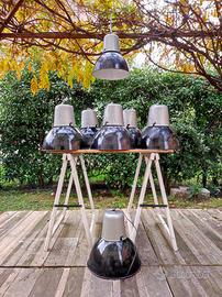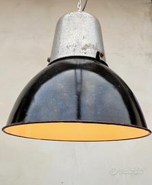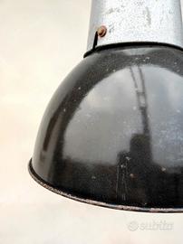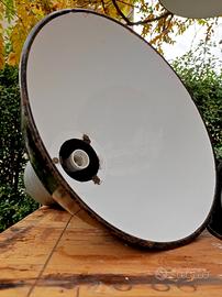 Rara lampada industriale di produzione "Mazda Francia" smaltata Vintage originale anni '50 a sospensione di forma circolare.