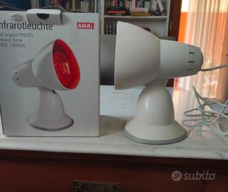 lampada infrarossi riscaldante utile per la terapia cervicale o muscolare. Prodotto in ottime condizioni dotato di lampada infrarossi Philips da 100 watt, completo di scatola e istruzioni in tedesco. Traduzione facilmente reperibile.