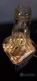 Lampada realizzata con bottiglia JACK DANIEL'S da 75 cl. All'interno presenta sabbia profumata all'essenza di vaniglia e spezie e luci led a batteria. Ideale per arredare, illuminare e profumare gli ambienti casalinghi con classe e originalità. Ad esaurimento dell'essenza basta versare qualche goccia di olio essenziale a proprio gusto per avere di nuovo la funzione di profumatore per l'ambiente