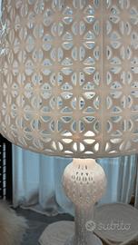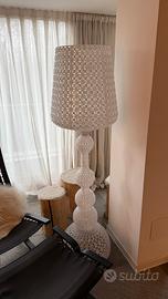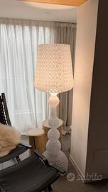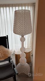 Ispirata al design del brand ma non ufficiale. Lampada da terra in policarbonato con lavorazione geometrica traforata, pensata per creare un effetto scenografico quando è accesa: la luce si diffonde in modo uniforme e genera riflessi decorativi su pareti e superfici vicine. Include lampada LED dedicata, dimmerabile e con temperatura colore regolabile (calda / neutra / fredda). La lampada è composta da due parti (parte alta “testa” + parte bassa “supporto”) da assemblare: la vendita comprende tutti i componenti necessari per utilizzarla subito. Controlli inclusi: •Touch sulla lampada: accensione/spegnimento, intensità, tonalità •Telecomando (pila non inclusa): accensione/spegnimento, intensità, tonalità + timer con diverse durate Caratteristiche: •Colore: bianco (anche altri colori disponibili) •Altezza: 166 cm •Diametro: 50 cm •Peso: 7 kg •Materiale: policarbonato •Alimentazione: corrente con presa EU ✅ Articolo nuovo, mai usato. 📦 Possibilità di ritiro a mano oppure spedizione disponibile. Spedizione molto accurata con BRT. Venduta come da fotografie.