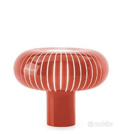 La tipica lampada da tavolo degli anni '70, rivisitata per forma e colore. L'abat-jour Cindy, composta da un cappello conico e da una base sferica, che scende a goccia, viene proposta in un'ampia gamma di tonalità metallizzate, tutte coprenti. Colore disponibile azzurro e arancio.