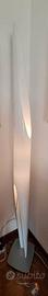 La lampada ottiene il suo speciale effetto luminoso grazie alle due sorgenti luminose, liberamente dimmerabili, che creano una luce ambientale calda e armoniosa. Anche il diffusore è un vero e proprio highlight dal punto di vista estetico, grazie alla lavorazione molto complessa e alla realizzazione in tubo di plexiglas tagliato ed estruso al laser. ht. 200cm.
