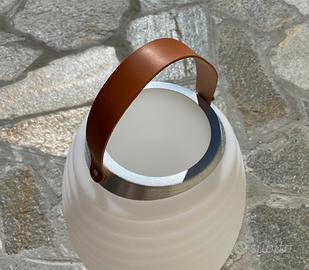 Vendo lampada Kooduu Synergy 50S, elegante e funzionale: perfetta per casa, terrazzo o giardino. 3 funzioni in un solo oggetto •Lampada LED ricaricabile con luce calda e soffusa, regolabile in intensità •Speaker Bluetooth 5.0 con suono a 360°, collegabile anche a più dispositivi Kooduu •Contenitore per bottiglia o secchiello per ghiaccio, ideale per feste e aperitivi Dettagli: •Modello: Synergy 50S •Altezza: circa 56 cm •Autonomia: fino a 10 ore •Batteria ricaricabile (cavo incluso) •Materiali: corpo in plastica bianca opalina, base in alluminio, manico in pelle naturale Elegante, portatile e di grande effetto – perfetto per ambienti interni ed esterni.