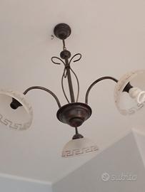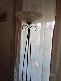 Vendo questi tre pezzi in coordinato. Ferro battuto. Una lampada a pavimento h.1,78 con cursore per graduare la luce, diametro coppa 40 cm.