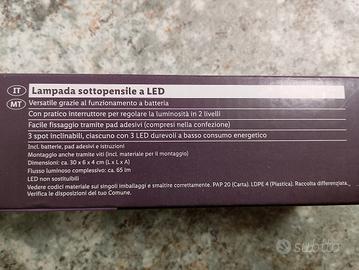Per errato acquisto vendo la lampada in foto completa di batterie. Concepita come sottopensile è utile in tutti i casi in cui si voglia illuminare senza costose modifiche all'impianto elettrico, piccoli spazi come ripostigli ed armadi. Per misure e caratteristiche vedasi foto.