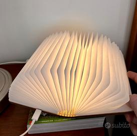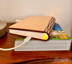 Vendo splendida lampada LED a forma di libro con copertina in vero legno. Un oggetto di design unico che unisce l'estetica di un libro alla magia di una luce diffusa e accogliente.
