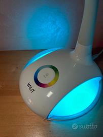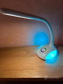 Lampada da scrivania a LED 7W e illuminazione RGB nel supporto - numerose varianti di colore con braccio flessibile della lampada - regolazione dell'angolo di illuminazione, luce costante e non stancante vendo lampada con pannello touch e telecomando per cambiare colore della luce RGB nella base con variazioni di colore e l'intensità della luce principale a 3 livelli di intensità luminosa (20%, 60%, 100%) con cavo USB che può essere collegato ad un caricabatterie USB universale, vendo per inutilizzo, utile per lettura. Altezza lampada: circa 42 cm, angolo del fascio: 120° Potenza: 7 W Sorgente luminosa: 2835 diodi HiLUX Indice di resa cromatica: RA>80 Filtro di protezione degli occhi.