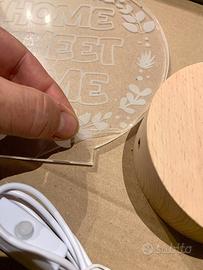 Lampada in plexiglass trasparente tagliata e retromarcata a laser. Una bellissima idea per un regalo o come complemento del proprio arredo.