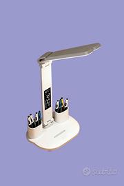 Lampada da scrivania a LED a doppia testa con display intelligente, luminosità regolabile con tre impostazioni di colore, controlli touch, portapenne integrato, design pieghevole, alimentazione USB e tecnologia di lettura a protezione occhi.