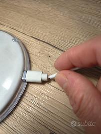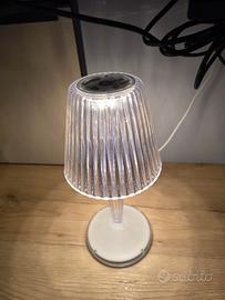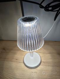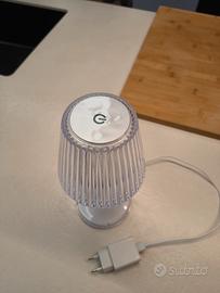Lampada Led completa di alimentazione e con tre modalità di colorazione di illuminazione. Usata pochissimo e in ottime condizioni. piccola imperfezione nel cavo di alimentazione come da foto. Misure: lunghezza 25 cm, diametro 12 cm.