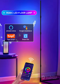Lampada da terra ad angolo intelligente RGBIC, app e telecomando Tuya, colori e effetti regolabili, luce da terra atmosferica per la casa
