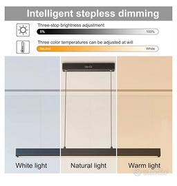 Questa lampada è dotata di 2 cavi regolabili. Quando si spingono o si tirano i cavi, è possibile regolarne la lunghezza semplicemente premendo il pulsante che li collega. L'altezza di questo lampadario a LED per tavolo da pranzo a isola può essere regolata entro 10-120 cm, molto adatta a diverse aree della casa.