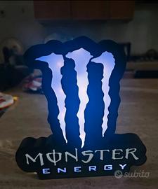 Lampada decorativa con il logo Monster Energy. - Design iconico del marchio. - Illuminazione LED viola
