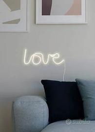 LAMPADA LED NEON LOVE Funziona a batterie o cavo USB. Predisposizione all'aggancio a parete. Mai usata.