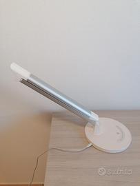 Lampada led per scrivania bianca reclinabile e con base rotante. Luce con intensità regolabile, effetto caldo/freddo (in tutto 4 tonalità da freddo a caldo). Altezza lampada 40,5 cm. Utilizzata pochissimo.