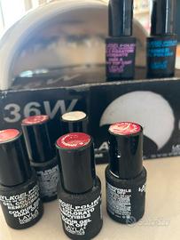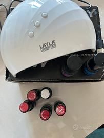 Lampada usata tre volte, con smalti rossi e cipria, base primer e lucidante. Tutto Layla. Funzionante.