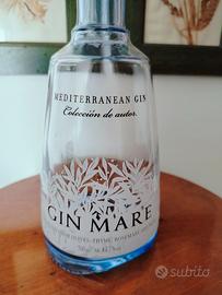Lampada led ricaricabile come uno smartphone. Luce calda, luce fredda, on/off con un tocco. Bottiglia Gin Mare naturalmente vuota.