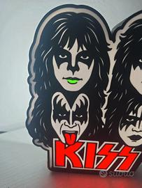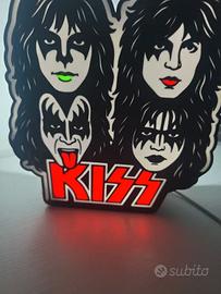 kiss rock band lampada led insegna luminosa rock anni 70 arredo sala musica decorazione garage music room idea regalo fan rock logo luminoso band storica oggetto collezione luce ambiente taverna studio musicale arredamento rock style