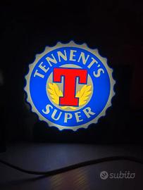 Vendo lampada LED decorativa stile tappo birra, design rotondo effetto insegna pub.