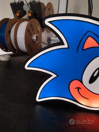 sonic videogame anni 90 lampada led gaming room decorazione gamer retrogaming luce da tavolo idea regalo ragazzo arredo camera oggetto luminoso stile arcade personaggio blu setup pc nostalgico
