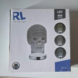 Lampada da tavolo a forma di teschio con un design moderno. - Illuminazione a LED. - Base stabile.