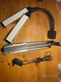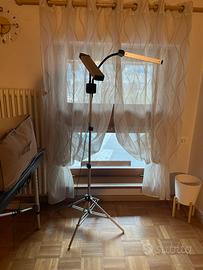 Vendo bellissima lampada a led professionale di altissima qualità con 5 livelli di luminosità. L’altezza massima da terra all’interruttore touch è di circa 158 cm. I doppi bracci sono girevoli a 360 gradi e flessibili. La struttura è leggera e molto comoda da gestire.