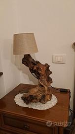 Lampada realizzata a mano con legno stagionato. Effettuato trattamento anti tarlo e mantenuto il colore originale. Altezza 50cm e larghezza 25. Pezzo unico.