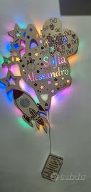 realizzazione di lampade in legno personalizzate con nomi e luci a vostra richiesta, stile e forme a vostra richiesta. Voi chiedete e noi lo realiziamo