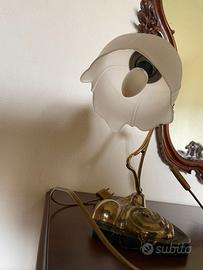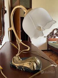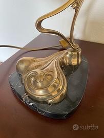 Lampada da tavolo stile Liberty in ottone lucido con vetro. Acquistata negli anni '70, di Possoni Illuminazione s.r.l.